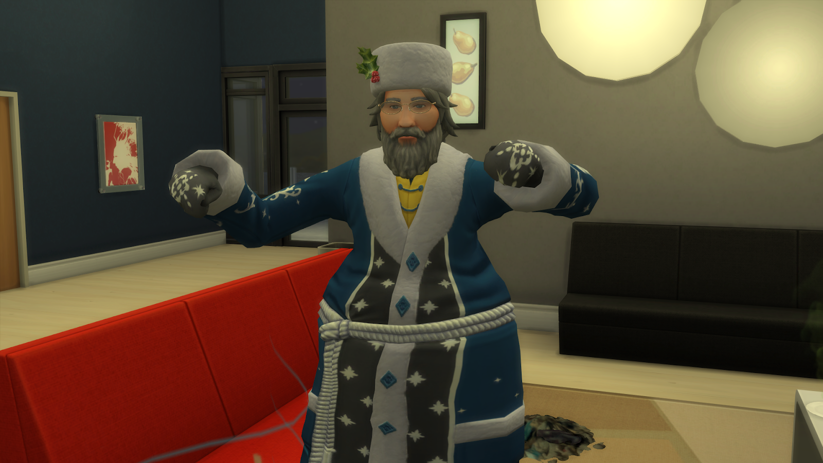 Back at the dorm, Father Winter is getting down!