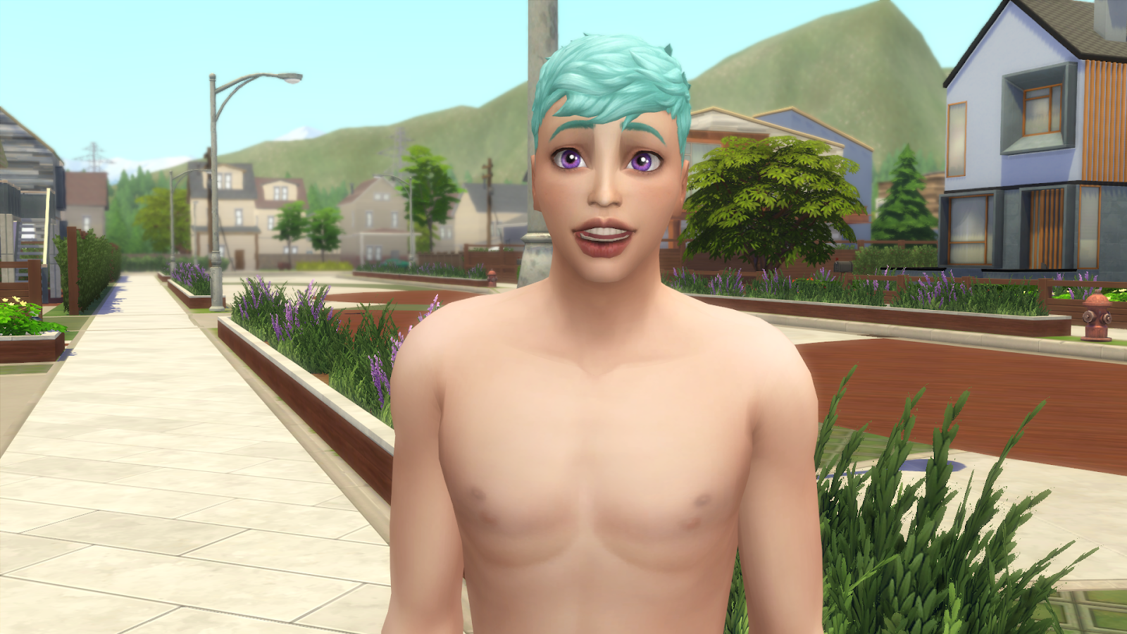 The neighbor was a male sim! It was very odd when he came out looking like that, I have no idea what kind of shenanigans are going on in their apartment and I don't wanna find out. xD