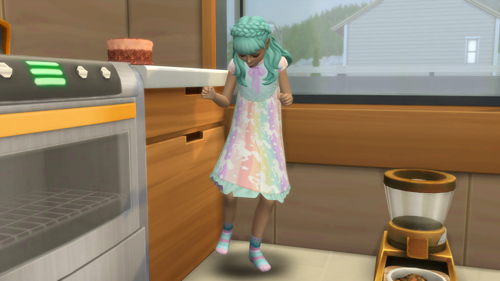 Pippa: "You think they'll notice if I jump on the counter and eat some SimCity cheesecake?"