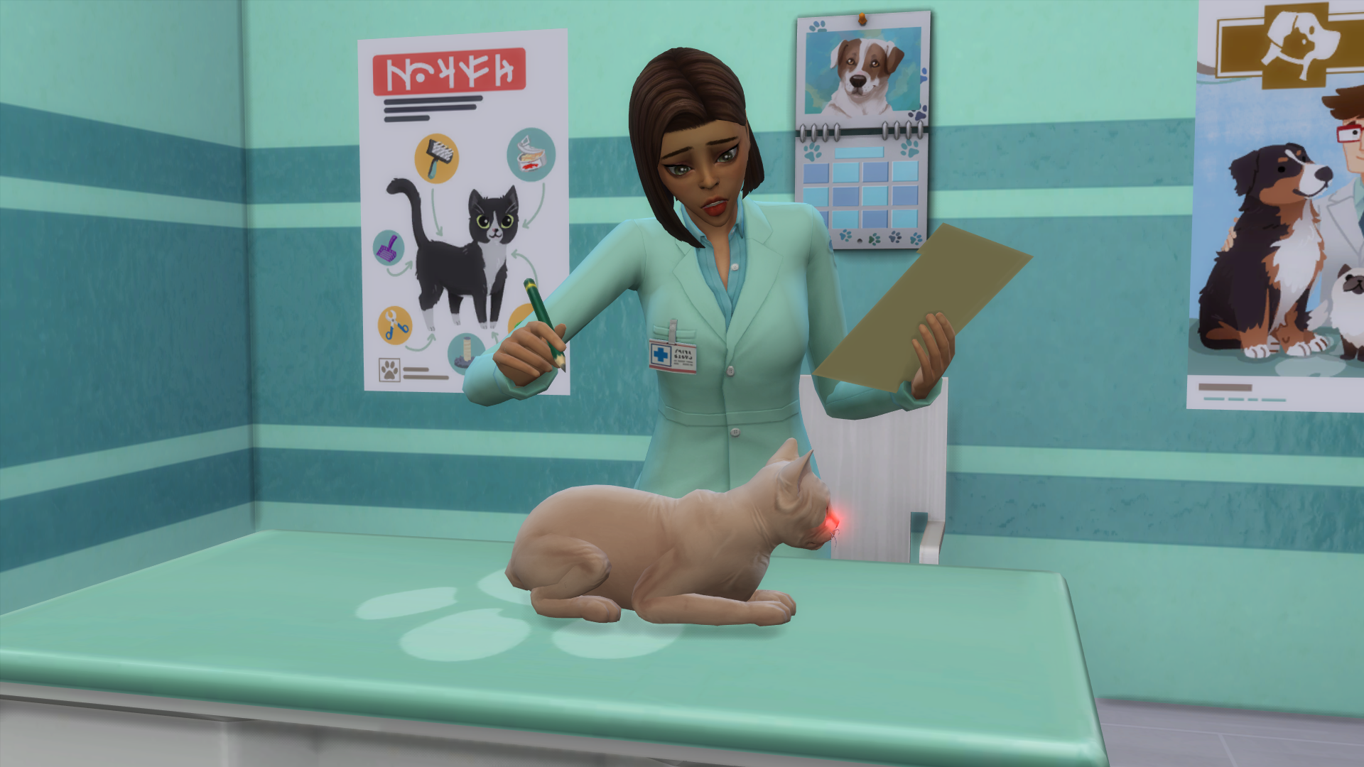 | Now, she has earned the 'Animal Whisperer' trait! This should make running the vet clinic a lot easier! |