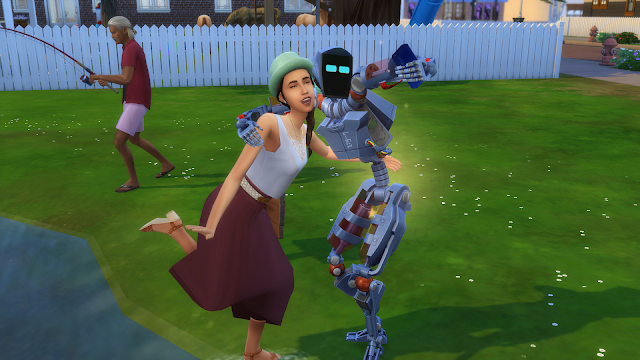 | You're probably wondering why the heck that just happened. Servo is working on the 'Serial Romantic' aspiration, now. He needs to have a girlfriend and go on two dates. |