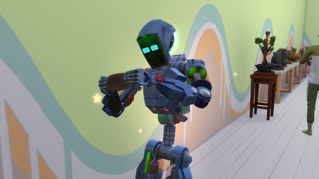 Tiffany: "Man, tending to the garden is so much work! Thank gosh that the gardening bot does this most days." |