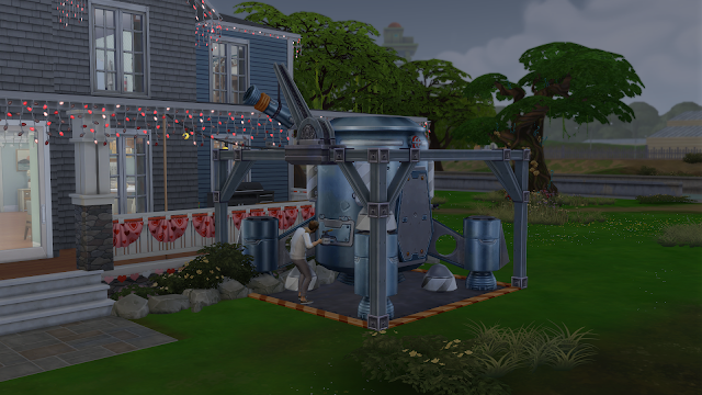 | Servo is back to working on the 'Party Animal' aspiration. He needs to earn silver on 3 thrown parties. Servo: "Hey, friend! Do you want to be the sole guest at my winterfest party?" |