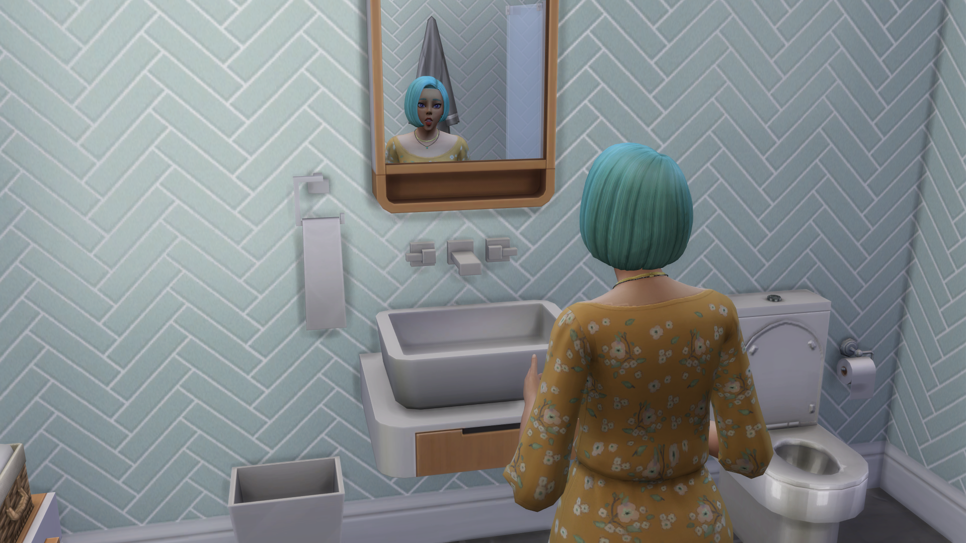 | Elle is growing more and more curious about these missing items. She needs to refresh her memory in The Sims Archives. |